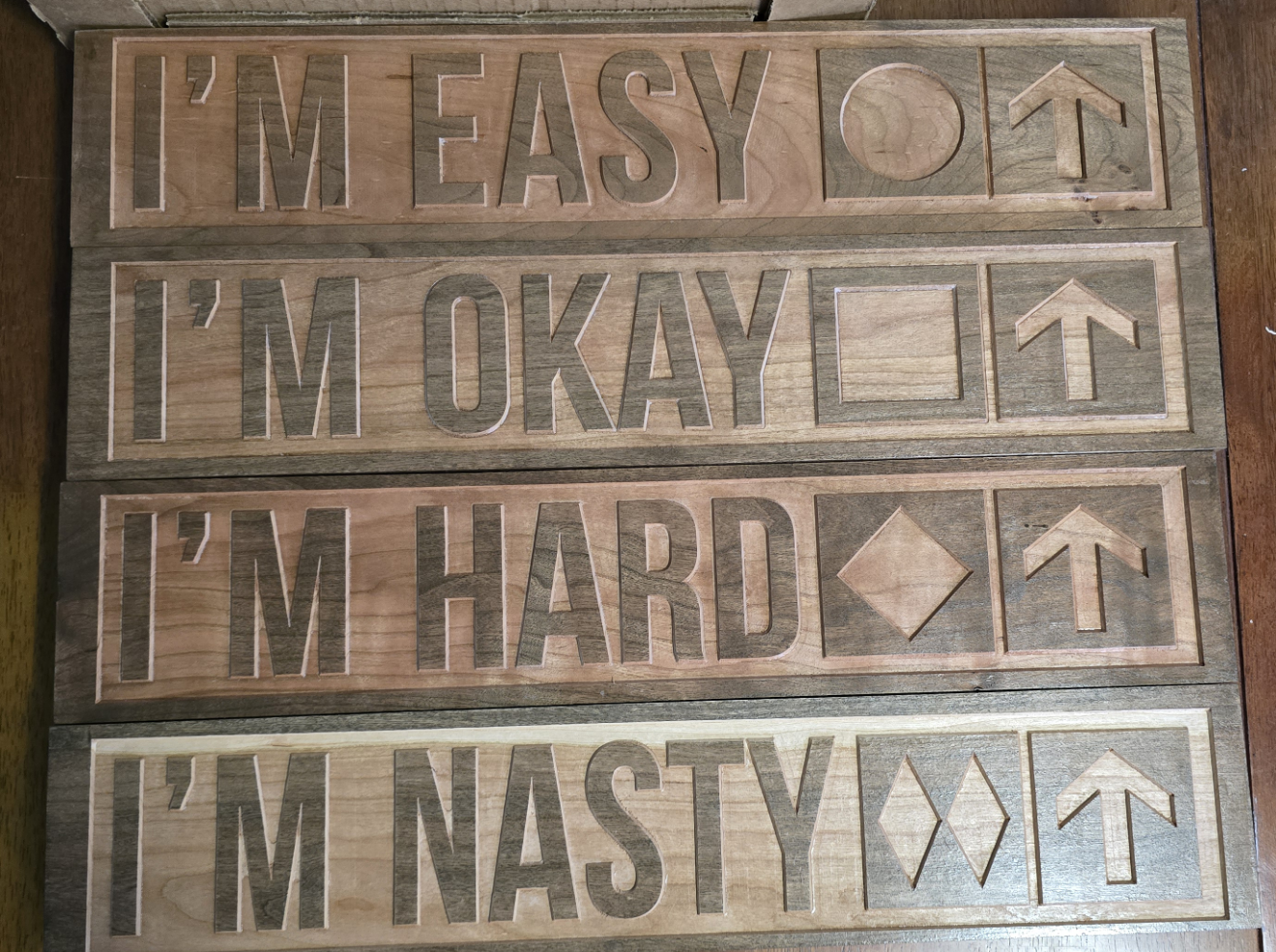 Style 1: Your design is carved out of natural cherry wood and hand painted for eye popping contrast. The corners and edges are rounded over. The sign is clear coated for protection and bring out the natural beauty.